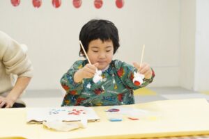 2階の保育室では、エコバッグを作るワークショップを行いました。