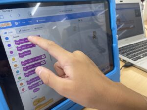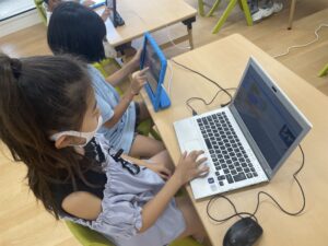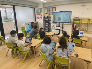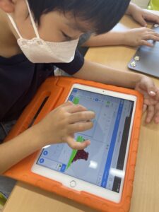 今日はプログラミングの「コーディング」について学んでいる子どもたち。