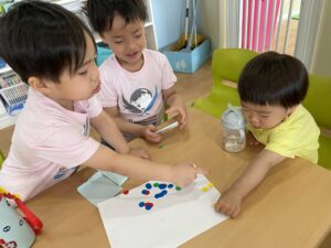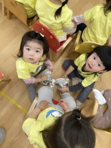 昨年度から通っている子どもたちは、新入園児の子たちをたくさんHelpしてくれるLittle Teachersがたくさんいます!