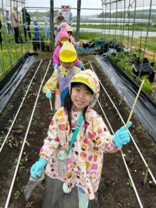 Although it rained, the hands-on experience of touching the soil and picking vegetables helped them develop a new appreciation: