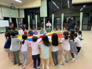 That night, they had exercise time with a parachute activity led by instructors from Rec Sports!