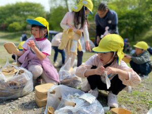 As they walked through nature, they made many discoveries using all five senses. A particularly memorable scene was how they collected fallen leaves for composting.