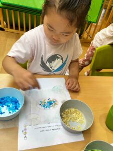 Back at school, they created their own water filters using sand and pebbles, and explored color-mixing and scent changes through sensory-based flower water play.