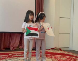 The Chargé d’Affaires gave an engaging presentation about Sudan. The children were full of curiosity and eagerly responded to questions in a fun, quiz-style format. They learned about Sudan’s geography, wildlife, sports, local products, and the country’s rich cultural and ethnic diversity. The children also had the chance to listen to songs popular among Sudanese children, including lullabies and educational songs that promote environmental awareness, such as preventing deforestation.