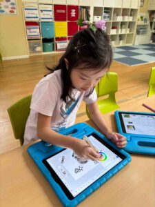 After creating mandala art on the iPad, the children designed and drew their favorite things, then printed them onto bags to complete their very own one-of-a-kind artwork.