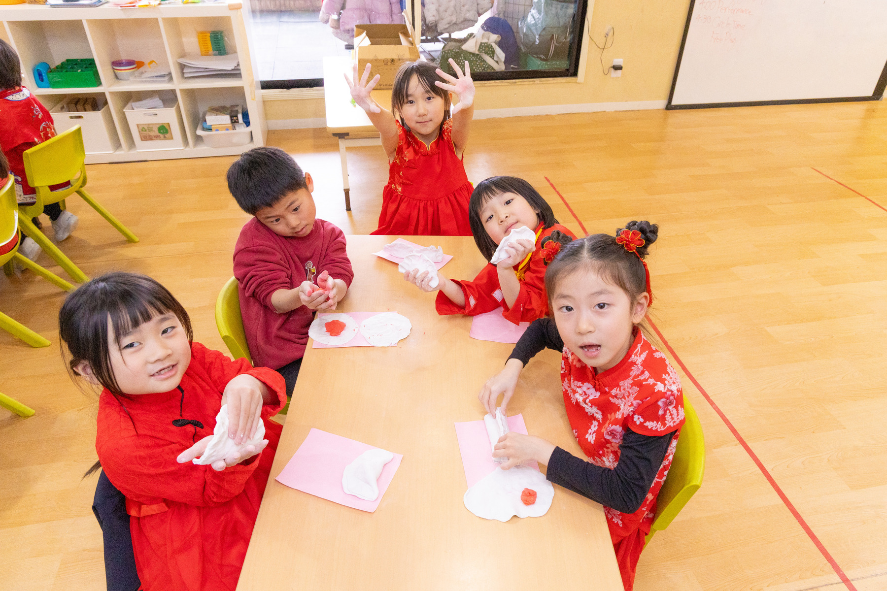 Next, the children learned how to fold Chinese dumplings using paper clay. They were very curious and excited to try it themselves, and many of them were able to wrap the dumplings beautifully without the teacher’s help.