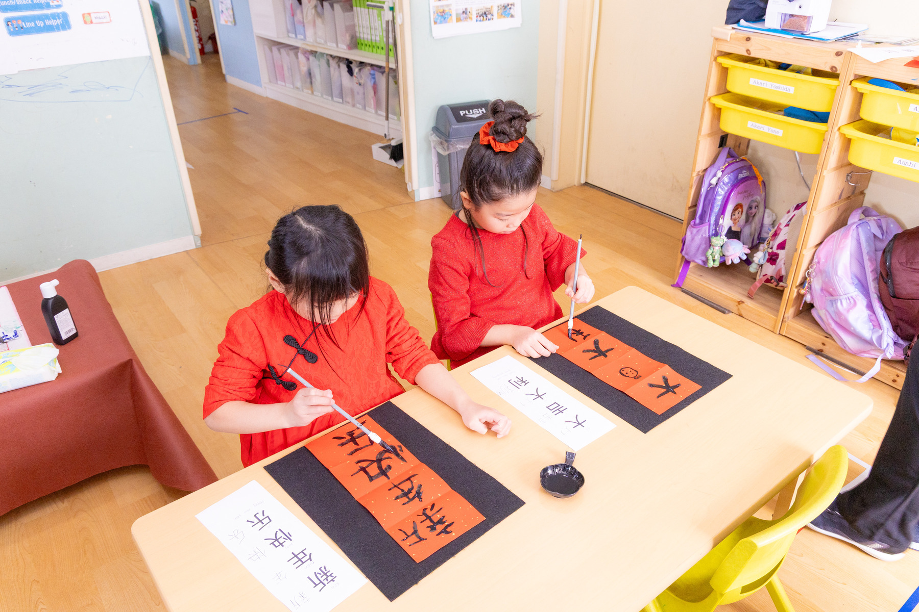 The children also experienced Chinese Calligraphy, a traditional art form from China. Looking at examples, they practiced writing using brushes.
