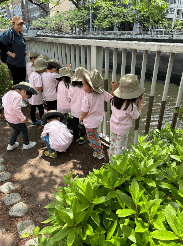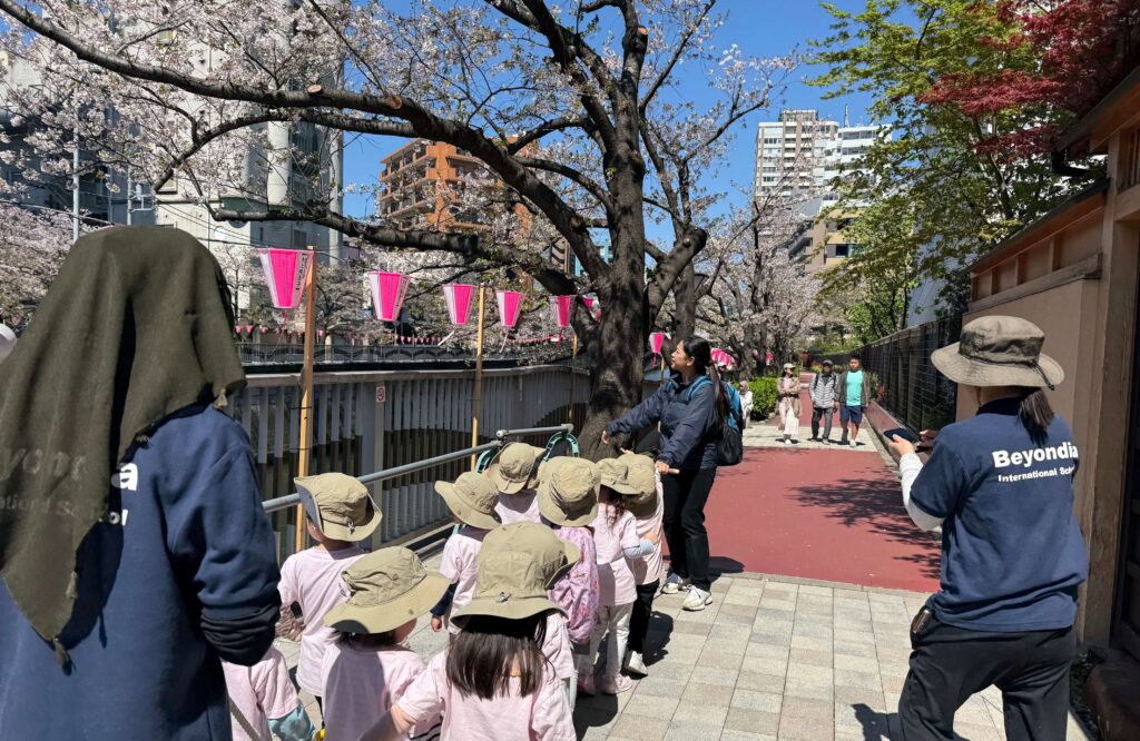 With the start of the new school year, the children—now settled into their new classes—went on a walk to Meguro River.